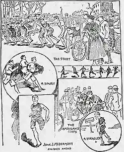 1. ^ a b "Record Time: J. J. McDermott Wins the 'Marathon' Race". The Boston Globe. April 20, 1897. p. 9. Retrieved April 18, 2023 – via newspapers.com.