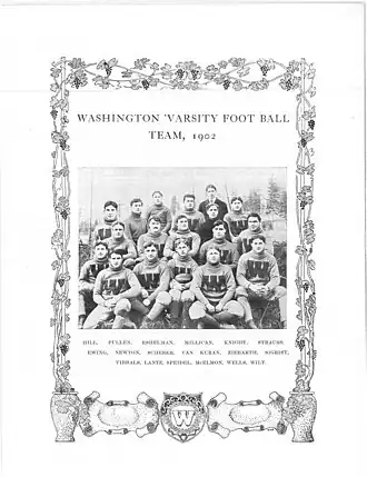 1. ^ "Good Record of Varsity Team — No Cloud on Title of Intercollegiate Champion — Review of the Year's Work". Seattle Post-Intelligencer. November 30, 1902. Retrieved December 6, 2024. The football team of the University of Washington has concluded one of the most successful and unique seasons in the history of intercollegiate football in the Northwest.