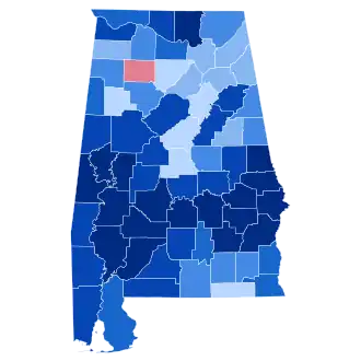 With 73.37% of the popular vote, Alabama would prove to be Parker's fourth strongest state after South Carolina, Mississippi and Louisiana.[2]
