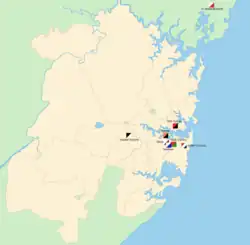 The geographical locations of the teams that contested the 1909 premiership across Sydney.