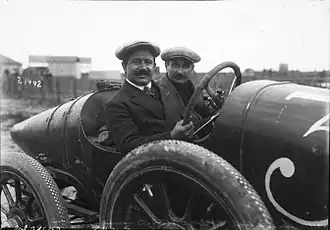 Once again the AC de la Sarthe et de l’Ouest[19](forerunner of the Automobile Club de l'Ouest) organised its own event – the Grand Prix of France, also known as the Coupe de le Sarthe, and not to be confused with the Grand Prix run by the ACF. It used the same course as the previous year, but this time ran in a clockwise direction. Both Grand Prix and voiturette cars were entered.[19] However the only large race-cars to arrive were the works Peugeots of Boillot and Goux, and a SPA. Many of the French voiturette teams at Dieppe were entered and this time both Thomas and Zuccarelli with the Lion-Peugeot L3.