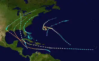 - ^ Chronological List of All Hurricanes: 1851 – 2019. Atlantic Oceanographic and Meteorological Laboratory (Report). National Oceanic and Atmospheric Administration. 2020. Retrieved August 23, 2021.