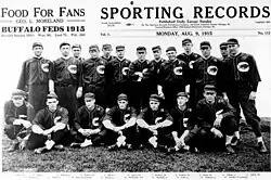 The 1915 Buffalo Blues season was a season in American baseball. The team, which did not have an official nickname but was generally known as the Buffeds the previous year, adopted the "Blues" nickname for the 1915 season. They were also known as the Buffalo Federals or Buffalo Feds. They finished 74–78, good for 6th place in the Federal League, 12 games behind the Chicago Whales. After the season, both the team and the league folded. It would be 105 more years—when the Toronto Blue Jays temporarily moved to Buffalo to play the pandemic-shortened 2020 season and avoid border restrictions—before Buffalo hosted Major League Baseball again.