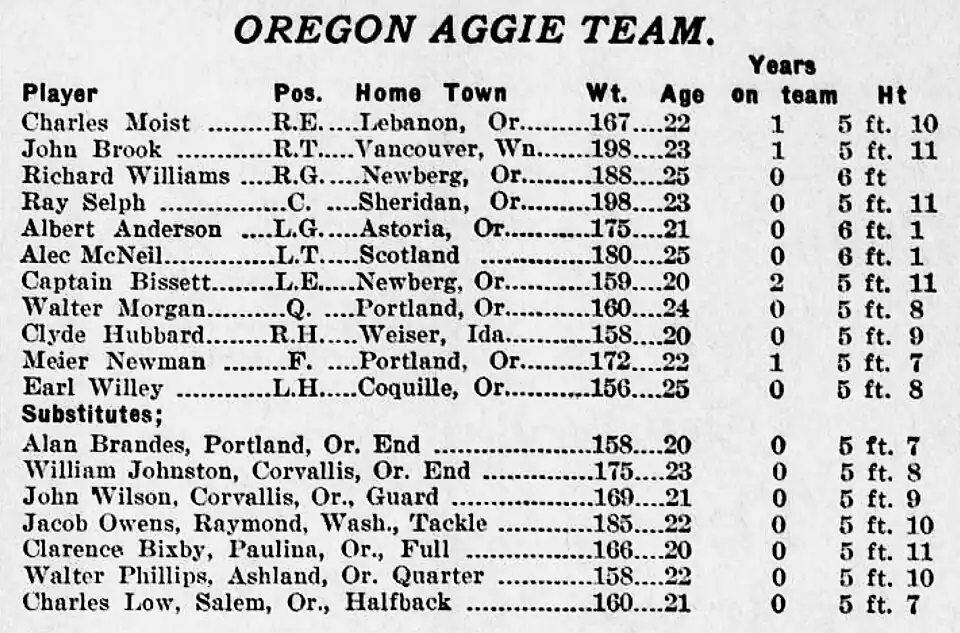 ^ "Oregon defeats O.A.C. grid team" . Spokesman-Review . Spokane, Washington. November 26, 1916. p. 2, part 3.