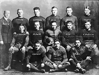 At age thirty, Knute Rockne made his head coaching debut on September 28 against Case in Cleveland.[1][2] This team included George Gipp, Hunk Anderson, and Curly Lambeau, founder and head coach of the NFL's Green Bay Packers.