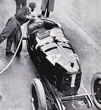 Foresti crashed in practice and Ferrari did not take the start because of mental exhaustion.[10] At the beginning of 35 laps, it was Segrave who had drawn pole position who took the lead. He held it until he had to pit with a misfire on lap 3 to change plugs. Bordino had come through the field getting his Fiat into the lead, pursued by Ascari, while Guinness and Campari tussled for third. On lap 9, Ascari moved into the lead when Bordino had to pit with fading brakes, as did his teammate Nazzaro.[10][30] The Sunbeam challenge was blunted when Guinness retired with crankshaft problems. Segrave brought his misfiring car back up through the field but only managed to reach sixth (while also setting the fastest lap time). Ascari was charging to victory when he suddenly slowed with just three laps to go. He was overtaken by Campari and Divo and he was forced to pit. When he could not restart the engine, his race was done. Campari held on to win the race with Divo just a minute behind in his Delage. His teammate Benoist was a further ten minutes back in third and Wagner was fourth in his Alfa.[31]