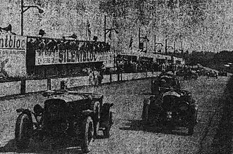As a change from recent years, the race-day was sunny and hot.[4] Caracciola, at the head of the line, was away first. On lap 2, his first flying lap, he broke the lap record (with a 6m52s) and then turned off the supercharger. This allowed the hard-charging Birkin in his Blower Bentley to close in. W.O. Bentley preferred to let the privateer do the chasing, telling his drivers to look after their cars and wave him through.[22][19] On the fourth lap, Birkin was on Caracciola's tail at the Pontlieue curves. Reaching 195 kp/h he got past the Mercedes as they braked heavily for the Mulsanne corner. Birkin did a 6m48s to set a new lap record, but on the next lap the tread came off a rear tyre and he had to pit. It took only half a minute to change the wheel, and then in only five laps Birkin was right behind the Mercedes. Just as he again overtook Caracciola on the Mulsanne Straight the tread on the other tyre let go. Although he dropped two wheels off the road, Birkin was able to complete the pass until the tyre blew at Arnage forcing him to pit yet again.[4][18]