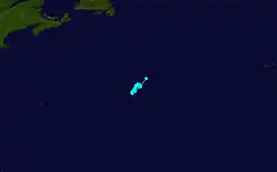 On September 4, an area of low pressure developed from a stationary front approximately 740 mi (1,190 km) south-southeast of Cape Race, Newfoundland.[2][3] At the time, a warm front and cold front were connected to the system, but further observations revealed minimal temperature deviations. The following day, the disturbance appeared to have acquired subtropical characteristics, but became tropical after observations showed that winds associated with the storm were near the center.[2] The system peaked as a strong tropical storm with maximum sustained winds of 70 mph (110 km/h) on September 5.[3] The storm later weakened and was absorbed by a frontal boundary at 18:00 UTC on September 7 roughly 165 mi (265 km) southeast of Cape Race.[2][3]