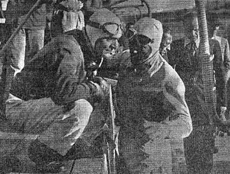 The honorary starter this year was John Cobb, British driver and all-time record holder at Brooklands.[31][32][33] Although the Lagonda was first away, it was "Raph" in his Talbot, who got to the front going down the Hunaudières Straight for the first time. Then Raymond Sommer got into the lead on the run down to Indianapolis.[34][32][31] Wimille was ninth at the end of the first lap, letting the engine warm up, just ahead of the Lagonda. Then on the third lap, Wimille broke Sommer's 4-year old track record and Veyron let him by to take third. Then, on successive laps he passed Brunet, then Sommer, to take the lead.[30][34] Only five laps in, Chiron had to pit the Talbot to change sparkplugs, costing him three laps.[12][35]
