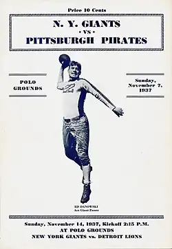 The 1937 New York Giants season marked the franchise's 13th year in the National Football League (NFL). The club played an 11 game regular season schedule, finishing with a record of 6 wins, 3 losses, and 2 ties — good for second place in the Eastern Division but missing the League Championship Playoff.