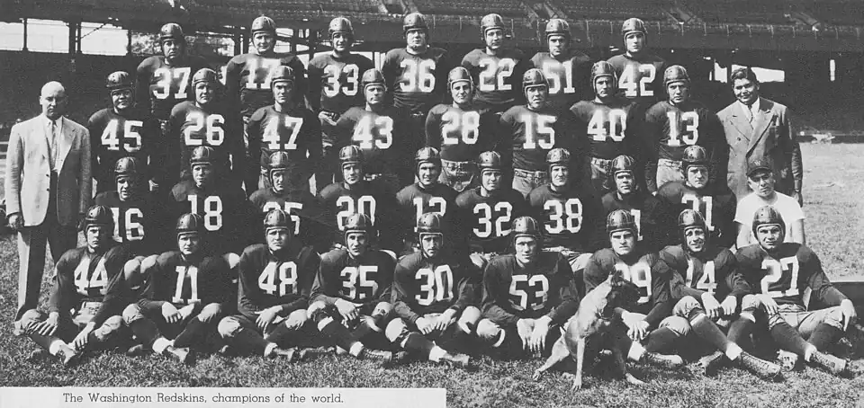 Official team photo of the World Champion 1942 Washington Redskins.