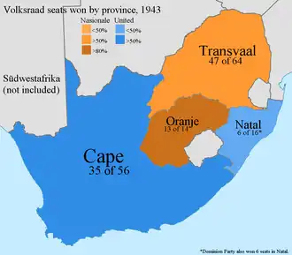 General elections were held in South Africa on 7 July 1943 to elect the 150 members of the House of Assembly.[1] The United Party of Jan Smuts won an absolute majority.