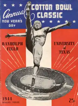 The 1944 Cotton Bowl Classic was a postseason college football bowl game between the fourteenth ranked Texas Longhorns and the Randolph Field Ramblers, a military institution squad from San Antonio, TX.[1]