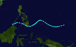 A long lived slow-moving and erratic tropical storm. The storm formed southwest of Micronesia, turned to the north and the west of Palau and made landfall in Mindanao.[2]