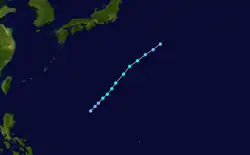 The scope of this article is limited to the Pacific Ocean, north of the equator and west of the International Date Line. Storms that form east of the date line and north of the equator are called hurricanes; see 1945 Pacific hurricane season. Predecessor agency to the Joint Typhoon Warning Center (JTWC), Fleet Weather Center/Typhoon Tracking Center was established on the island of Guam in June 1945, after multiple typhoons, including Typhoon Cobra in the previous season and Typhoon Connie in this season, had caused a significant loss of men and ships.[1][2] It would not take major responsibility in the West Pacific basin until 1950 season.[1] Instead, storms in this season are identified and named by the United States Armed Services, and these names are taken from the list that USAS publicly adopted before this season had started earlier this year.[3][4] Since this is the first season to be included in the West Pacific typhoon database, this would also be the first season where the names of Western Pacific tropical cyclones are preserved publicly.