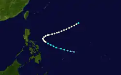Typhoon Queenie was a storm that formed over the northeastern part of the Philippines on August 5, 1945, and dissipated on August 9, 1945. It had 1-minute sustained winds of 140 km/h (90 mph) and a pressure reading of 976 mb. Queenie formed close to the Philippines and made its way over the northern part, eventually making its way back to the sea where is later dissipated. Damages and fatalities are unknown.