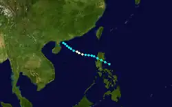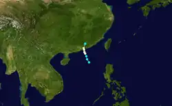 A tropical storm was tracked on November 1 to the northwest of the Marianas. It moved to the west, before making landfall on Tayabas (now Quezon) in the Philippines. It was last noted on November 4 over modern-day Aurora Province. The damage is unknown.