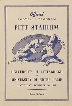 - ^ "20,000 Expected To See Pitt Play West Virginia". Pittsburgh Sun-Telegraph. September 27, 1945. p. 18. Retrieved August 25, 2023 – via Newspapers.com.