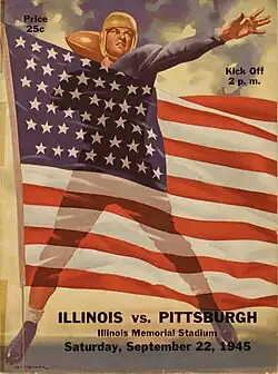 - ^ a b Ward, Arch (September 23, 1945). "Veteran Illini Eleven Defeats Pittsburgh, 23–6". Chicago Sunday Tribune. p. Part 2-2. Retrieved August 16, 2023 – via Newspapers.com.