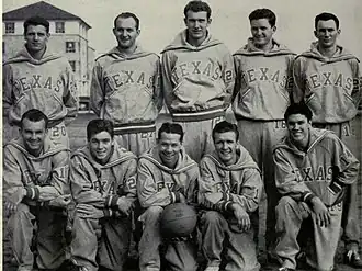 The 1946–47 Texas Longhorns men's basketball team represented the University of Texas at Austin in intercollegiate basketball competition during the 1946–47 season. The Longhorns were led by eighth-year head coach and former Longhorn basketball consensus first-team All-American Jack Gray. The team finished the season with a 26–2 overall record, for the highest win percentage in all of college basketball for the season,[1] and a 12–0 record in Southwest Conference play to win the SWC championship.[2][3] Texas advanced to the NCAA tournament for the third time, recording its second Final Four appearance.[2][4]