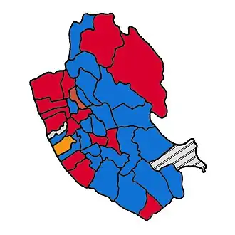 ![]() Map of Liverpool showing wards won (first placed party)[1] | ||