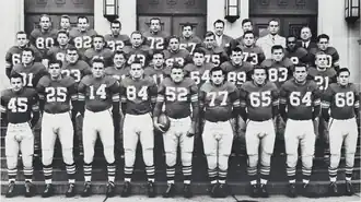 The Spartans began the Munn era with a 55–0 loss to in-state rival Michigan. The Spartans' only other setback was a narrow 7 to 6 loss to Bear Bryant's Kentucky Wildcats. In intersectional play, the Spartans beat Mississippi State (7–0), Washington State (21–7), Santa Clara (28–0), Temple (14–6), and Hawaii (58–19).[2] The Hawaii game was played in Honolulu with Bud Crane scoring four touchdowns for the Spartans.[5] The team's 58 points against Hawaii was its highest total since 1932.[4]