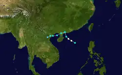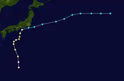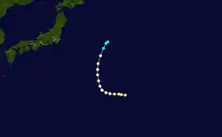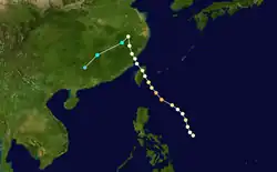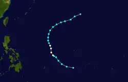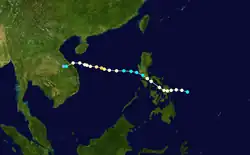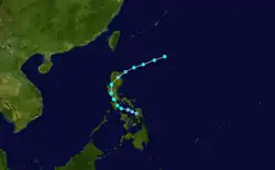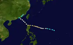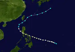 After passing Manila, the storm emerged from the coast of Zambales towards the South China Sea, starting to shift more towards the northwest and eventually north and northeast, all the way moving parallel to the coast of Luzon. The typhoon weakened into a tropical storm and recurved west of the Batanes group of islands and passed through the Bashi Channel south of Taiwan and continued north-eastward towards Miyakojima and the southern Japanese islands and eventually dissipated on 29 December. No data is available on what happened to the system after turning post-tropical.