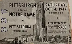 - ^ Chester L. Smith (October 5, 1947). "Notre Dame Shows Great Power Overwhelming Panthers, 40 to 6". The Pittsburgh Press. p. 28 – via Newspapers.com.