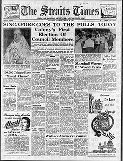11. ^ "Singapore Legislative Council General Election 1948". Archived from the original on 2023-01-24. Retrieved 2015-09-14.