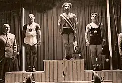 Medal winners of freestyle 68 kg. From left to right, Kamal Mahgoub, Mahmoud Namjoo and Joseph DePietro