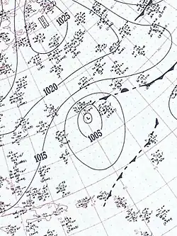 On February 2, a non-frontal low formed in the western Caribbean Sea two months after the end of the hurricane season. It moved quickly north-northwestward and acquired gale-force winds as it brushed the northern coast of Cuba. Early on February 3, the storm struck Cape Sable, Florida and quickly crossed the state.[4] The Miami National Weather Service office recorded a wind gust of 68 mph (109 km/h) during its passage.[5] The winds damaged windows and power lines,[6] catching residents and tourists off-guard.[7] The cyclone also dropped 2–4 inches (51–102 millimetres) of precipitation along its path, causing crop damage in Miami-Dade County.[5]