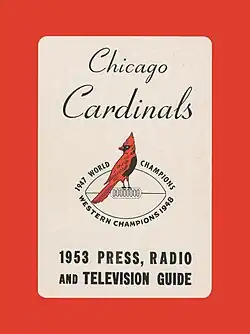 The 1953 Chicago Cardinals season marked the 34th year the team was in the National Football League (NFL). The team failed to improve on their previous output of 4–8, winning only one game, the final game of the season.[ 1] They thus failed to qualify for the playoffs for the fifth consecutive season.