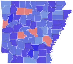 Faubus:      30–40%      40–50%      50–60%      60–70%      70–80%      80–90%      <90%