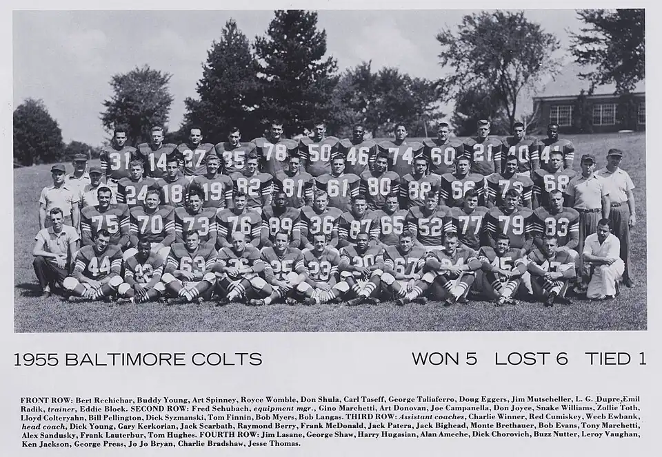 Official team photo of the 1955 Baltimore Colts.