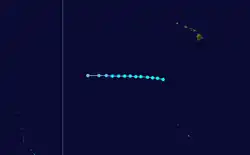 The fifth tropical cyclone to form or enter the central Pacific was first identified on September 25 several hundred miles south of the Hawaiian Islands. Traveling nearly due west, the storm attained an intensity of 50 mph (80 km/h) before weakening. By September 27, the storm weakened to a tropical depression and later dissipated on September 28 over open waters.[2]