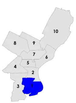 Voters in the 1st district also voted for city council in 1957 in a special election called after the death of Councilman Thomas I. Guerin the year before. Democratic ward leaders in the district, which covered most of South Philadelphia, nominated Emanuel Weinberg, leader of the 39th ward and a former state Deputy Secretary of Insurance. The nomination was not without controversy: Governor George M. Leader had fired Weinberg along with several other political appointees who were found, as The Philadelphia Inquirer reported, to have "enjoyed immunity from supervision and control and were permitted to pursue their private enterprises in addition to their State duties."[16]