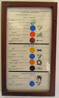 Fifteen of the 30 elected seats were uncontested, all of which were won by the TANU.[2] In each constituency, voters voted for an African, Asian and European candidate.[3] A further 34 members were appointed.[4]