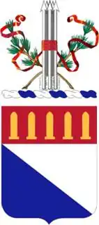 The 195th Infantry Regiment was organized in 1947 and 1948, with the regimental coat of arms being approved on 30 October 1953. The regiment perpetuated the lineage of the 941st Field Artillery Battalion and the 774th Tank Destroyer Battalion that served on the Western Front of World War II, and the previous 172nd Field Artillery Regiment of the New Hampshire National Guard. The 941st had been formed from a battalion of the federalized 172nd Field Artillery Regiment while the 774th incorporated Battery H of the 172nd.[1][2]