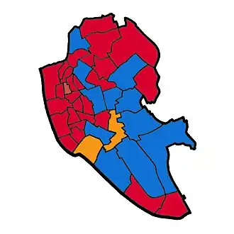 ![]() Map of Liverpool showing wards won (first placed party)[1] | ||