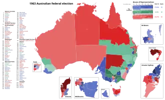 The 1963 Australian federal election was held in Australia on 30 November 1963. All 122 seats in the House of Representatives were up for election. There was no Senate election until the 1964 Australian Senate election. The incumbent Liberal–Country coalition government, led by Prime Minister Sir Robert Menzies, won an increased majority over the opposition Labor Party, led by Arthur Calwell.