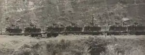 The 5th RI managed to travel in army trucks and three private buses, and the 6th, in private trucks and the Pássaro Marrom company's buses.[14] The 1st Light Tank Battalion (BCCL) from Campinas continued to board trains, although, according to Colonel Cid de Camargo Osório, from the General Staff of the 2nd Army, its movement was delayed by the "internal enemy", which managed to cut off electricity supply. The transport situation was difficult, and they had to provide resources to personnel who were still on foot.[15] Fuel along the way was guaranteed by governor Adhemar de Barros. Under his order, Postos Atlantic's petrol stations filled vehicle tanks "without bureaucracy; a 'note' was signed and that was it".[16]