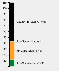 | 5 | 17 | Lotus-Climax | 107 | +3 laps | 17 | 2 | |