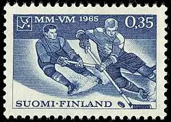 A Finnish stamp dedicated to the 1965 World Ice Hockey Championships