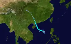 Severe Tropical Storm Fran, designated as "Mameng" by PAGASA, originated in the western Pacific on July 30 near the South China Sea. The storm tracked steadily westward over the next two days. By July 31, Fran intensified, reaching its peak intensity with sustained winds of 70 mph (110 km/h) and a minimum pressure of 975 hPa. Maintaining a consistent westward trajectory, Fran approached China's southern coast by August 2. At 18:00 UTC, it made landfall south of Guangdong Province as a weakening tropical storm. The system rapidly deteriorated over land, downgrading to a tropical depression within 12 hours. By August 3, Fran dissipated inland.