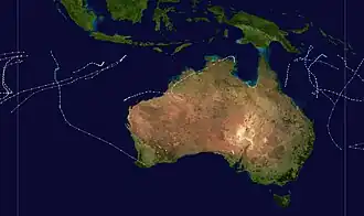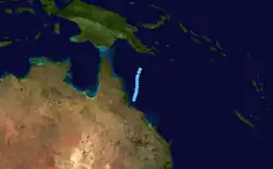 The weakening Irene from the South Pacific basin entered the region on February 21. The storm weakened as it executed a loop before it was last noted on February 24 to the east of Cairns.[3]