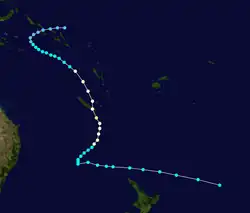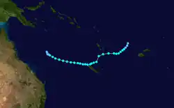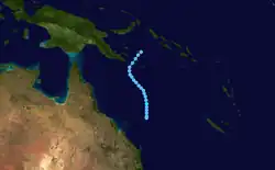 A tropical low was noted forming near the Solomon Islands on January 27. It failed to develop and moved into the South Pacific basin, where it was named Colleen before striking New Caledonia.[2] It entered the basin again on February 4; however, it wasn't renamed. It reexited the region, the next day, shortly before transitioning to an extratropical cyclone.