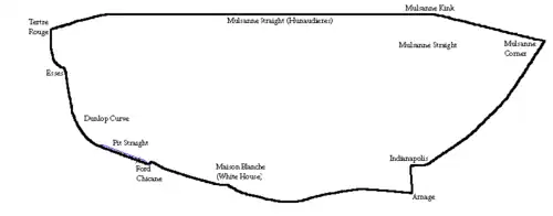 Because the race was rescheduled and the longer period of darkness, the Automobile Club de l'Ouest (ACO) permitted one battery change.[3] With high speed being such a talking point, Ford volunteered to sponsor a major road realignment on the main straight, installing a chicane just before the pitlane.[3] The changes added at least 10 seconds to a lap, as well as causing greater wear on tyres and brakes. Although the track had been widened and safety features of the track improved in the aftermath of the 1955 disaster, this was the first significant layout-change to the circuit since 1932. Diverting the racing away from the pits also significantly increased the safety of the pit-crews. Finally, in line with the global racing trend, commercial advertising was now allowed on cars.[2]