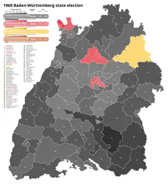 Summary of the 28 April 1968 election results for the Landtag of Baden-Württemberg[2]