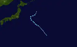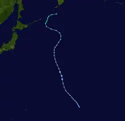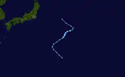 Kim formed southeast of Guam on May 28. It intensified into a Category 3 typhoon while curving northeast. Kim slowly weakened as it moved north. The storm dissipated on June 5.
