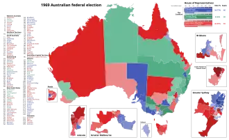 The 1969 Australian federal election was held in Australia on 25 October 1969. The incumbent Liberal–Country coalition government, led by Prime Minister John Gorton, won the election with a severely diminished majority over the opposition Labor Party, led by Gough Whitlam, despite losing the two-party-preferred vote.